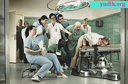 И пульт в руке. …целует в спину, в спину, в спину, в спину, в копчик. Раздвигает ягодицы. А оттуда в лицо бьет ему луч света и строгий голос спрашивает: «А НОСКИ ПОЧЕМУ НЕ СНЯЛ ? ! ?»